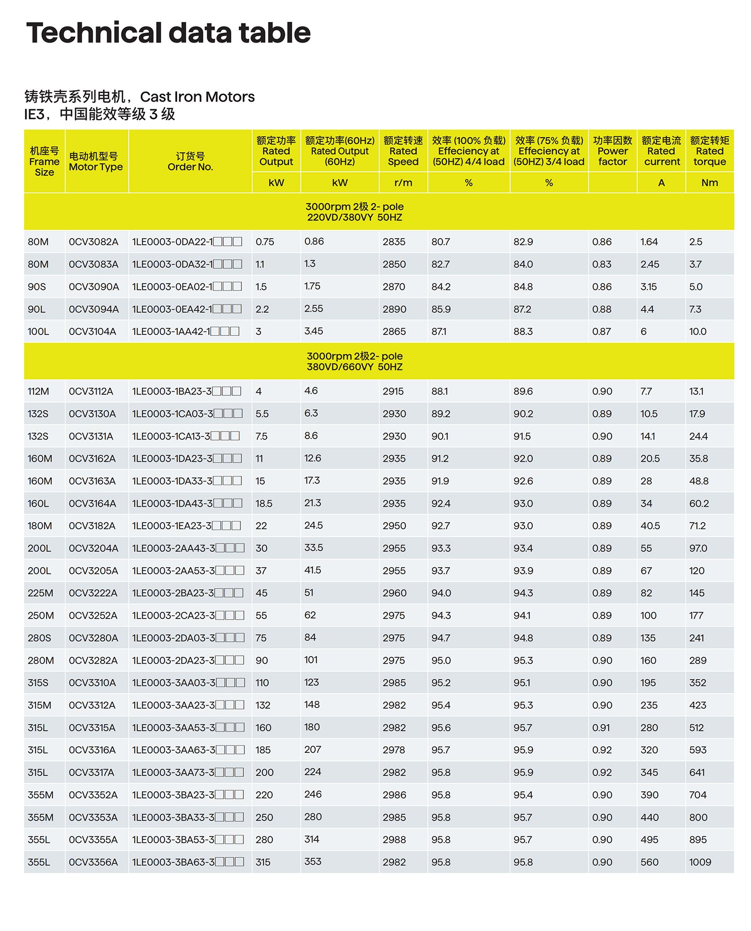 - Available in 2,4, 6, 8 pole motor(0.75kW and up) withefficiency grade 3. according to GB18613-2020 andefficiency classlE3 (50Hz)according tolEC 60034-30.moptimizedcompact style construction.